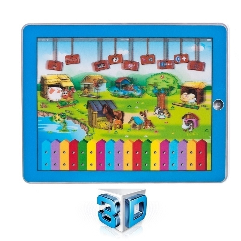 Trójwymiarowy, interaktywny tablet edukacyjny, dotykowy. Dziecko uczy się rozpoznawać dźwięki, poznaje podstawowe słowa. Wesołe melodie zachęcają do nauki. Możliwość kompozycji własnych utworów.