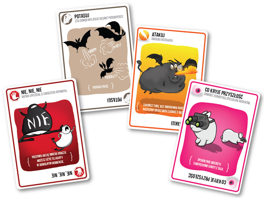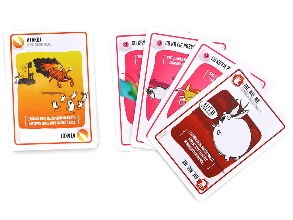 Mimo że na początku może się wydawać, że wszystko zależy od szczęścia, w rzeczywistości kluczem do wygranej jest sprytne zarządzanie kartami, które pozwalają na unikanie niebezpieczeństwa. Możesz używać kart takich jak „Rozbrojenie kotka”, które umożliwiają Ci anulowanie wybuchu, lub kart zmieniających bieg gry, by przesunąć ryzyko na przeciwników.