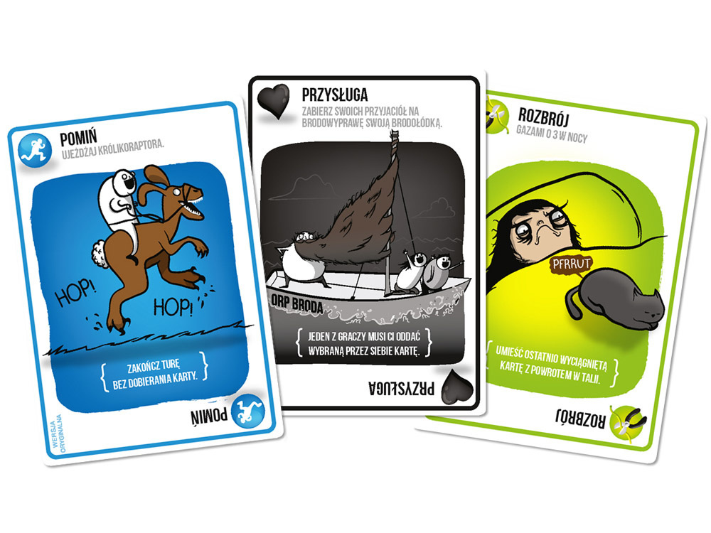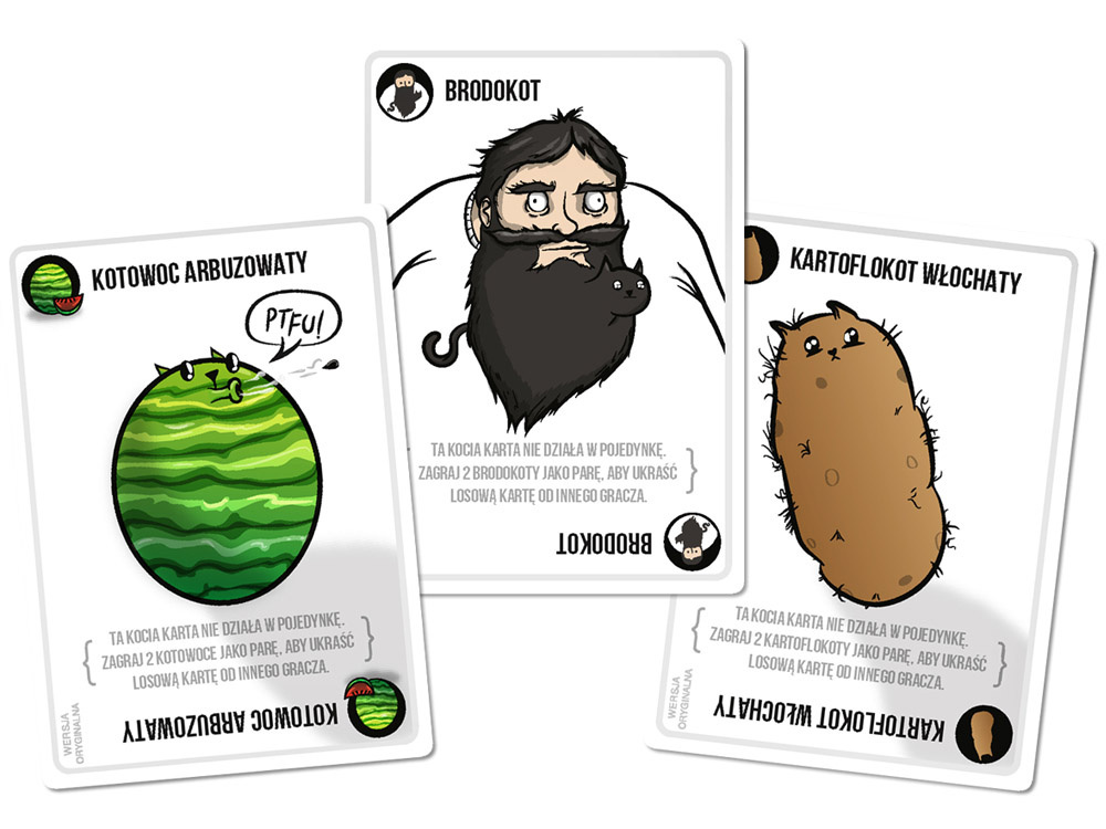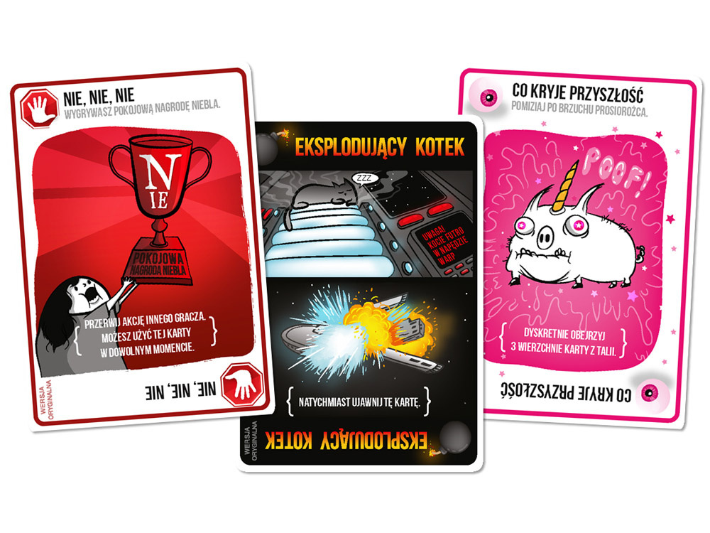Dużo śmiechu i emocji: Gra pełna jest nieoczekiwanych zwrotów akcji, które powodują mnóstwo emocji. Moment, w którym ktoś losuje eksplodującego kotka, zawsze wywołuje salwy śmiechu. Dodatkowo, karty specjalne pozwalają na sprytne oszukiwanie przeznaczenia, co czyni grę pełną napięcia.