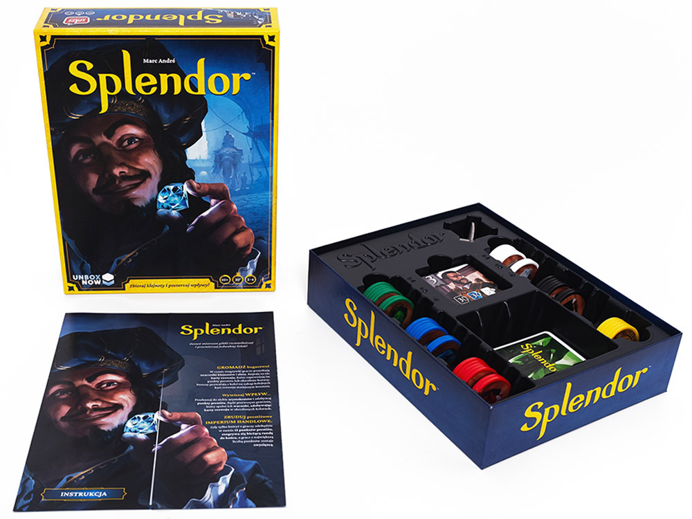 Splendor to strategiczna gra planszowa, w której gracze wcielają się w renesansowych kupców, rywalizujących o prestiż i bogactwo. Aby osiągnąć sukces, muszą zbierać klejnoty, inwestować w rozwój swojego imperium handlowego i zdobywać przychylność arystokratów. Gra łączy prostotę zasad z głębią strategicznych decyzji, dzięki czemu sprawdzi się zarówno dla początkujących, jak i doświadczonych graczy.