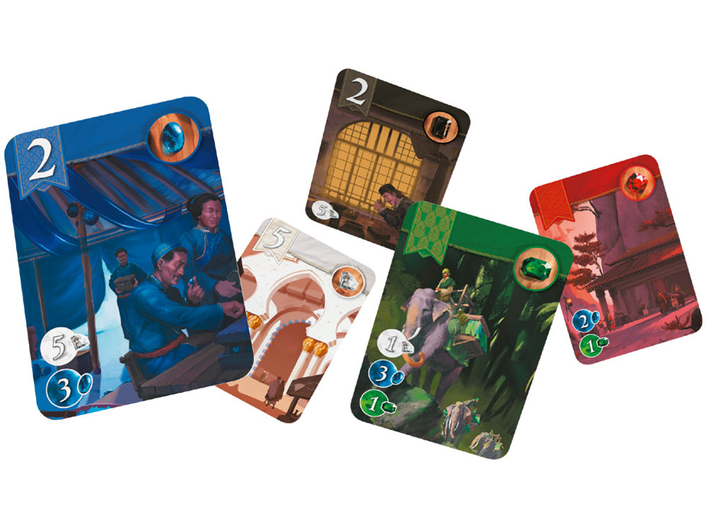 - Gracz płaci za kartę, wykorzystując zebrane klejnoty i ewentualnie znaczniki złota. - Kupiona karta trafia do obszaru gracza i zapewnia premię (stały rabat na przyszłe zakupy) oraz ewentualne punkty prestiżu.