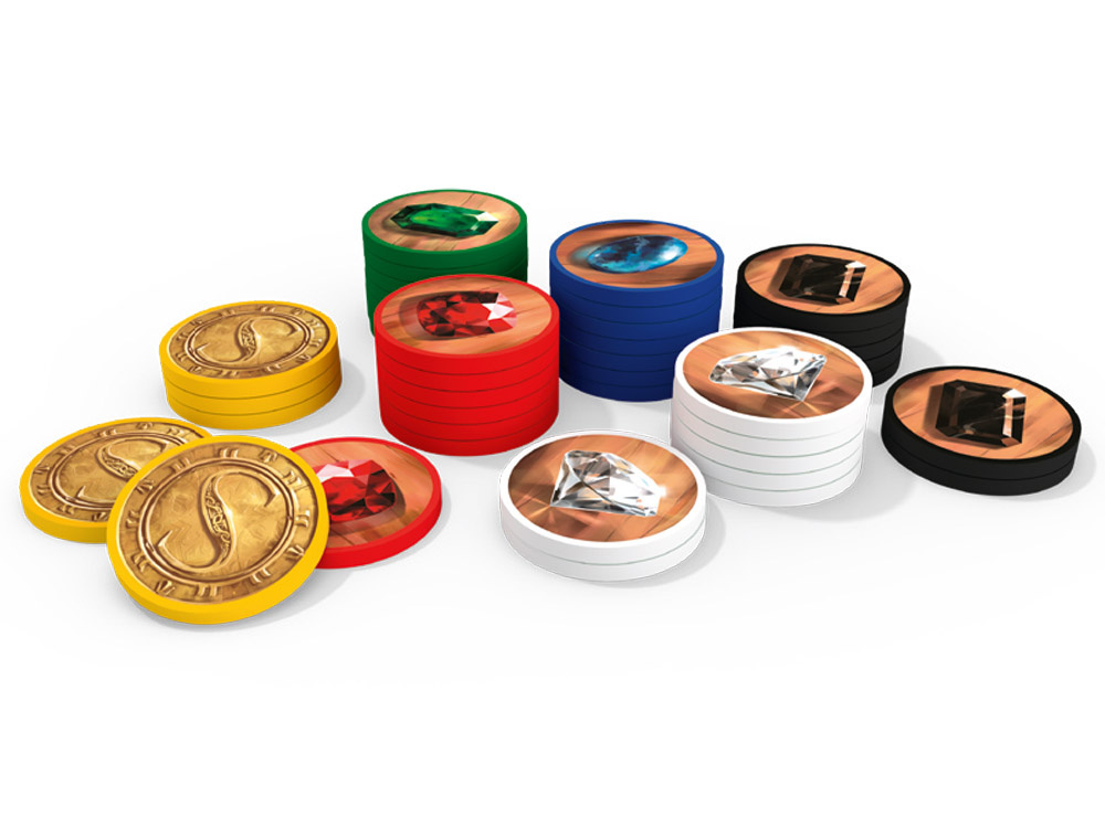 Rozłożenie znaczników klejnotów i złota – Na stole umieszcza się 40 znaczników klejnotów (po 7 z każdego rodzaju: diament, szafir, szmaragd, rubin, onyks) oraz 5 znaczników złota (działających jako jokery).
