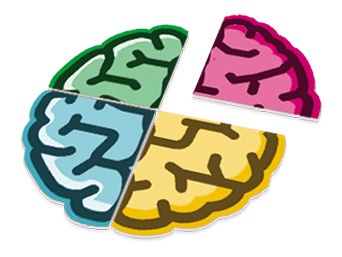 Jeśli uzbiera 2 karty z tym samym rewersem – wymienia je na 1 z 4 elementów układanki mózgu.