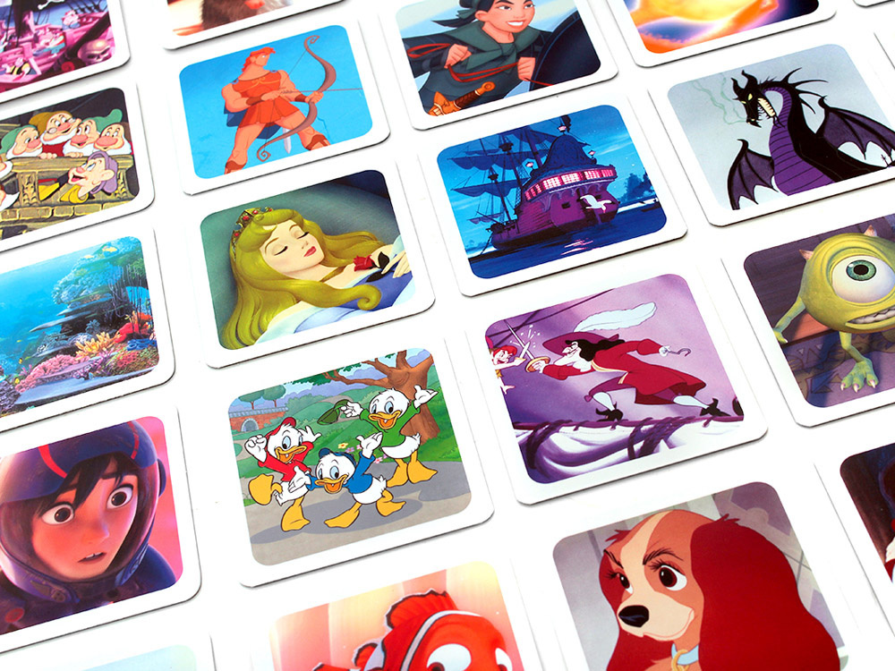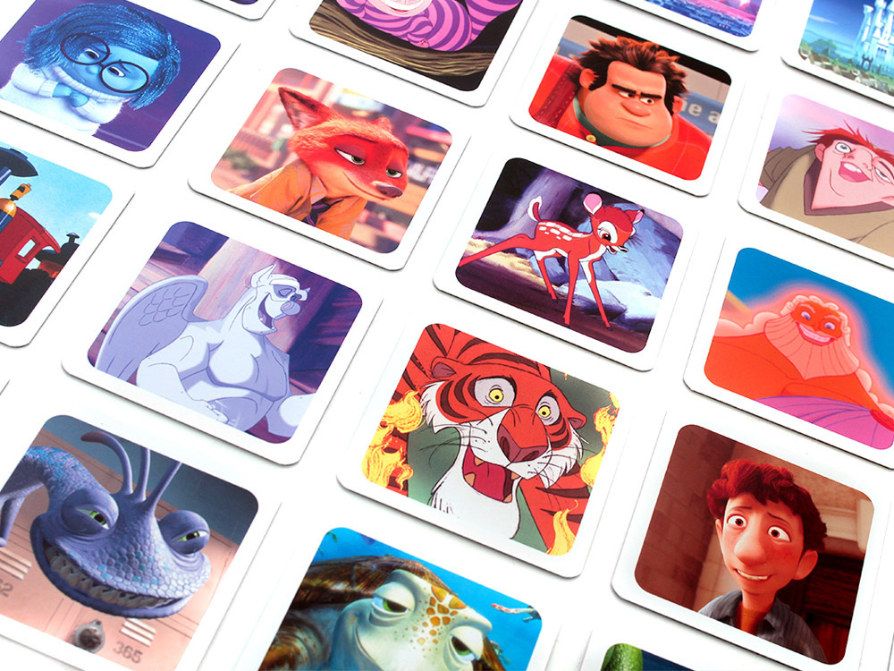 - Na stole leży 25 kart z postaciami, przedmiotami i miejscami z filmów Disneya. Karty są ułożone w 5 rzędów po 5 kart, tak, żeby były widoczne dla wszystkich graczy.