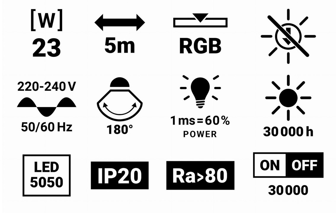 - Anzahl von SMD 5050 LEDs: 30/m 150/3m
