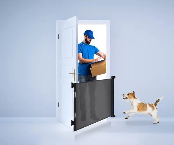 UNIVERSELLER EINSATZ - Die faltbare Schutzwand kann sowohl zum Schutz von Kindern als auch von Tieren verwendet werden.
