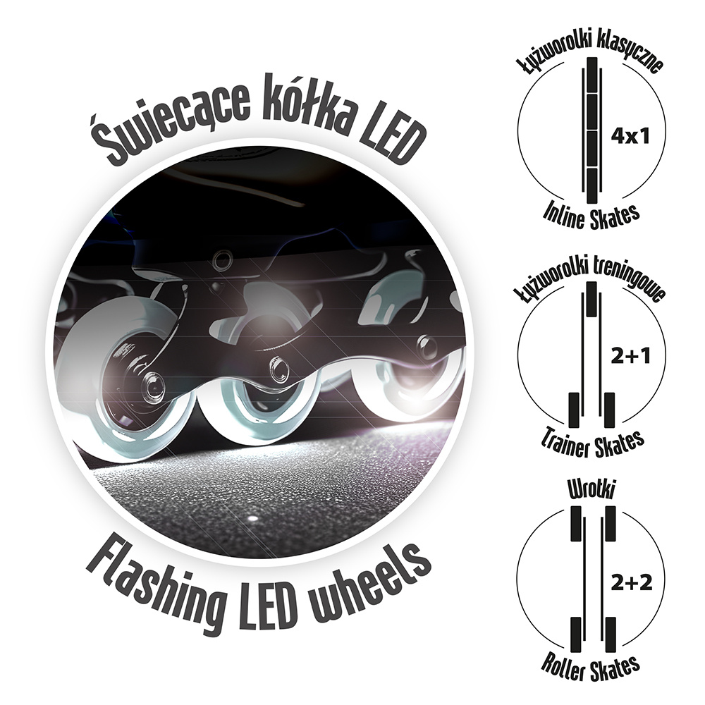 Inline brusle 3 v 1 – všestranné, nastavitelné, s LED kolečky! Objevte novou úroveň bruslení s inovativními 3v1 inline bruslemi, které se přizpůsobí vašim potřebám! Tento multifunkční model nabízí tři konfigurace: - Klasické inline brusle (4x1) – ideální pro milovníky rychlosti. - Tréninkové inline brusle (2+1) – pro lepší stabilitu a učení. - Quad brusle (2+2) – skvělé pro začátečníky a fanoušky klasického stylu. Klíčové vlastnosti: - Nastavitelná velikost – roste s uživatelem! - Ložiska ABEC-7 z uhlíku – hladká a rychlá jízda. - 64x24 mm PU 82A LED kolečka – dynamické odpružení a světelné efekty. - Lehký hliníkový rám – odolnost a stabilita. - Bezpečné upevnění – Suchý zip + TPR brzda (na pravé brusli). - Bezpečnostní normy: EN 13843:2009, EN 13899:2003 (Směrnice CE 2011/65/EU). Perfektní dárek! Sada zabalena v elegantní krabici s barevnou etiketou. Maximální nosnost: až 60 kg (třída B). Všestrannost, styl a bezpečnost – vše v jednom!