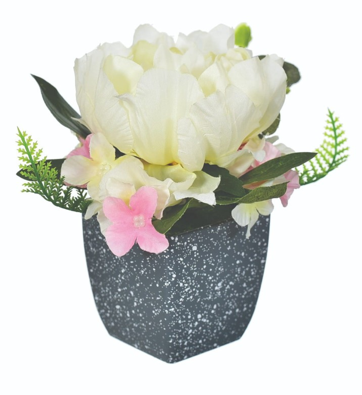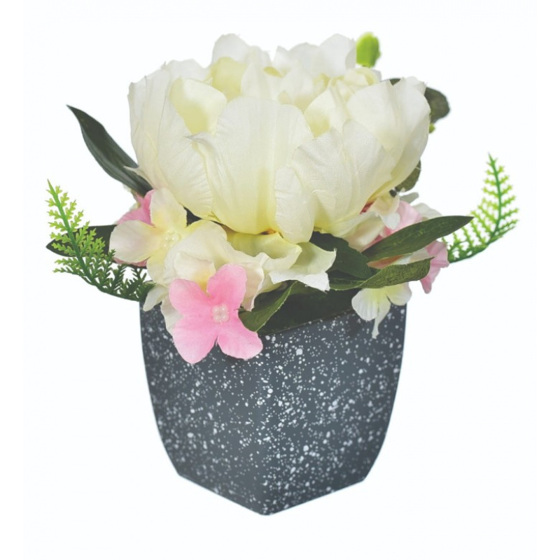 Roślina sztuczna Hortensja w doniczce biała - 14 cm