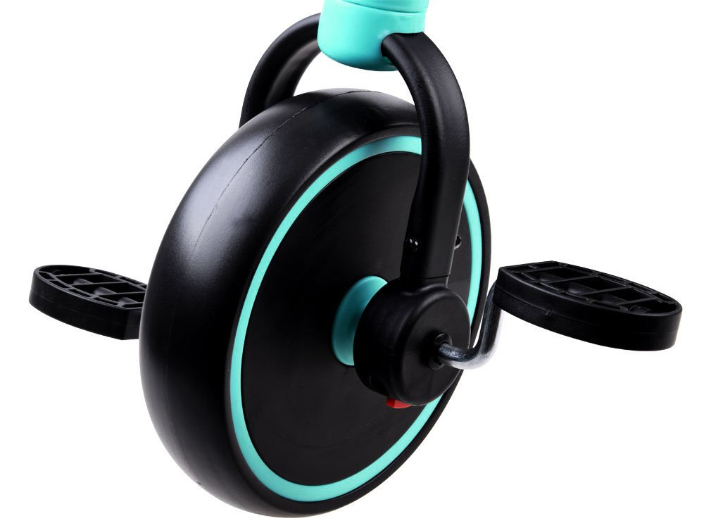 - Rowerek trójkołowy opcja dla dziecka, które ma ochotę używać już siły swoich nóżek do pedałowania, rowerek ma zamontowane pedałka, rozstawione szeroko z tyłu koła. Jazda jest stabilna i bezpieczna