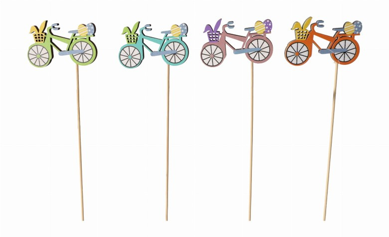 Ten uroczy rowerek drewniany na piku to doskonała ozdoba, która wprowadzi wiosenny klimat do Twojego domu! Idealny do postawienia w ogrodzie, na tarasie lub w donicy, może być również świetnym elementem dekoracyjnym na stół wielkanocny. Kolor wysyłany losowo, brak możliwości wyboru.