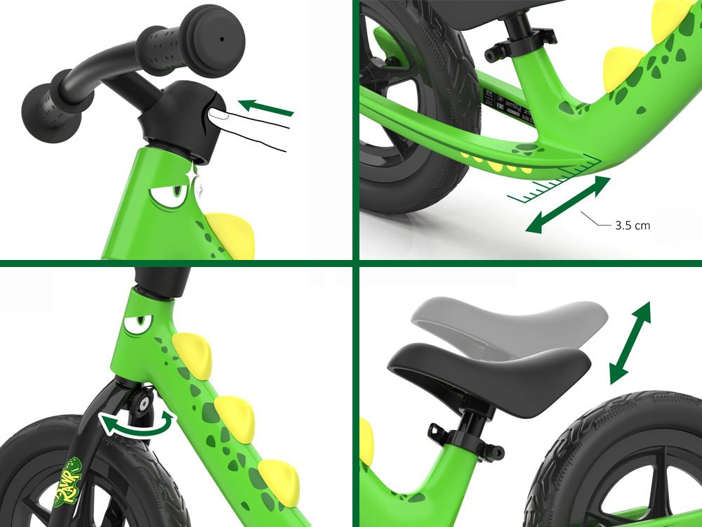 Der DINO RoyalBaby Scooter mit 12-Zoll-EVA-Rädern ist ein leichtes und komfortables Fahrrad mit Dinosaurier-Motiv. Es ist ideal für Kinder ab 3 Jahren. Während des Spiels trainiert das Kind seinen Gleichgewichtssinn und die gesamte Bewegungskoordination, was für das spätere Radfahren wichtig ist. Dank des verstellbaren Sattels wächst das Fahrrad mit unserem kleinen Radler mit. Der leichte Fahrradrahmen aus Aluminium und der Lenkeranschlag sorgen dafür, dass Ihr Kind während der Fahrt sicher manövrieren kann. Royalbaby ist eine Marke von Fahrrädern für Kinder. Die Produkte dieser Marke zeichnen sich durch hohe Verarbeitungsqualität, attraktives Design und Innovation aus. Royalbaby garantiert eine sichere und angenehme Fahrt für jedes Kind.