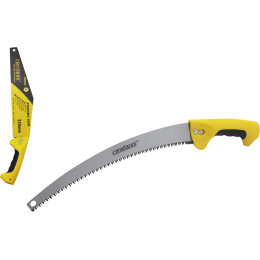 Čepel zahradní pily je extrémně ostrá a odolná díky tepelnému zpracování a leštěnému povrchu, který zabraňuje korozi a prodlužuje její životnost.