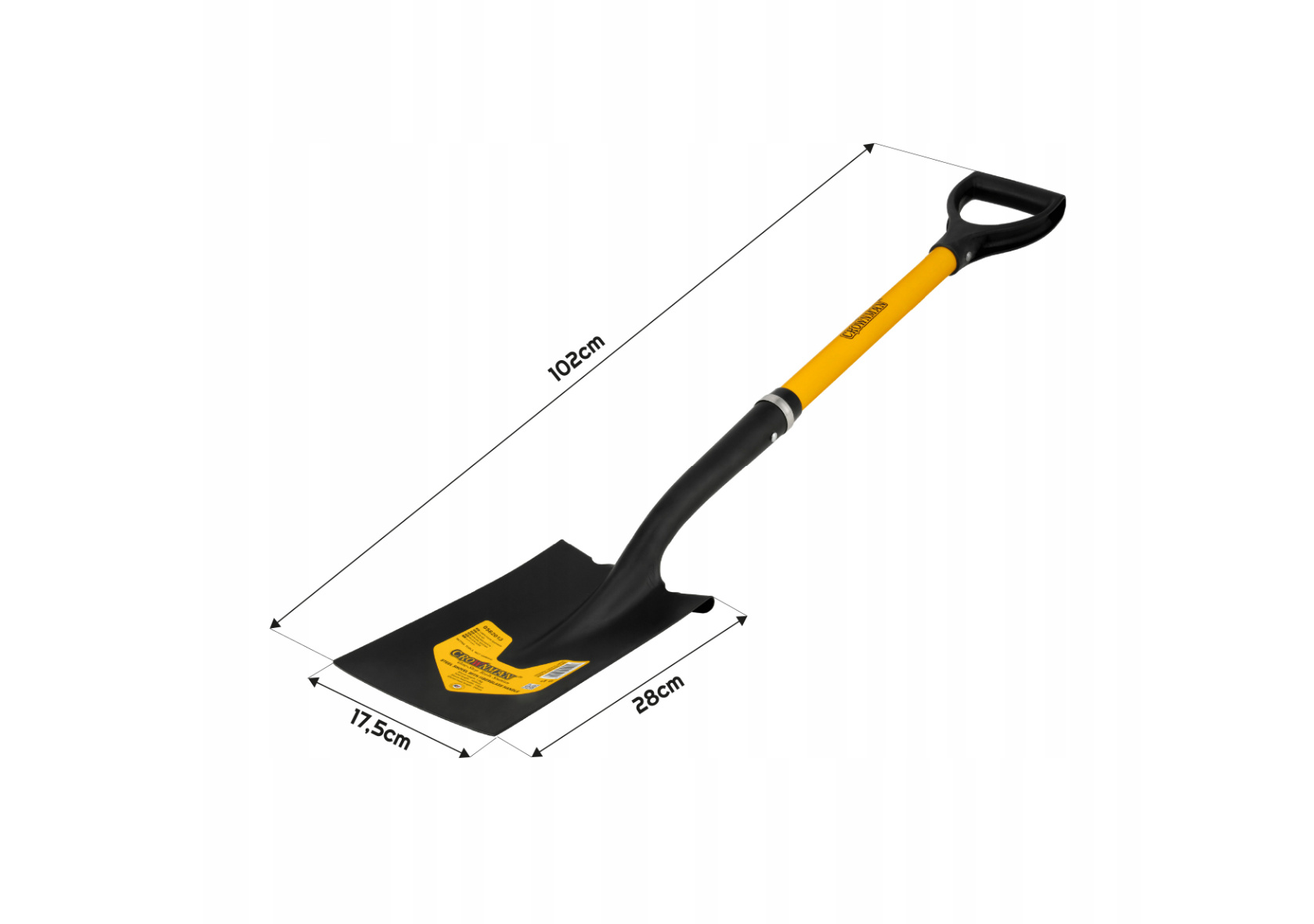 Technické parametry: Délka topůrka: 105cm Materiál: Ocel + plast Typ: Rýč