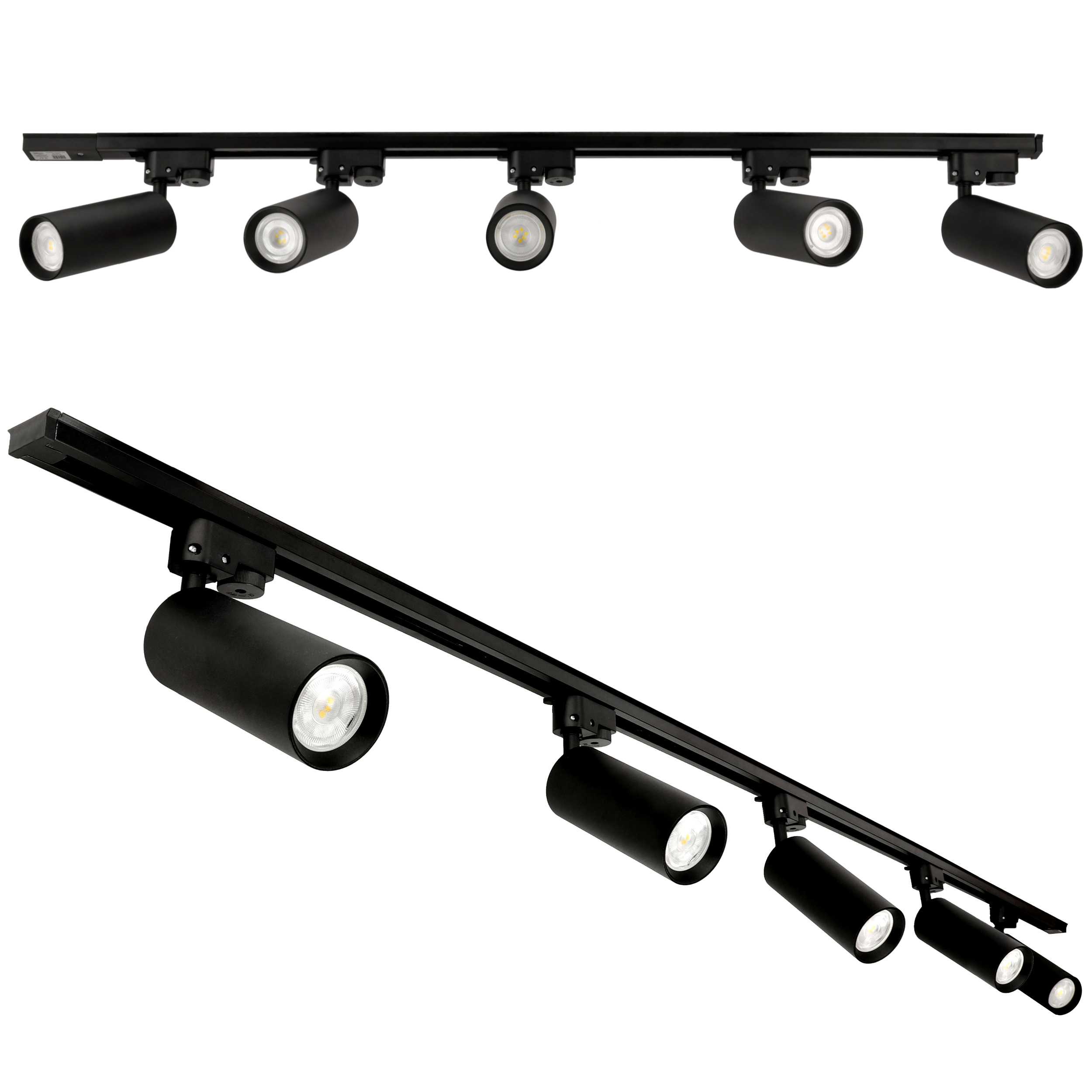 Technické údaje spotu: napájení - 220/240V max. zátěž - 35W halogenová / 10W LED žárovka v ceně - není součástí objímky - ano materiál - barva hliník - matná černá třída těsnosti - IP20 rozměry - Ø60 x 14 cm / délka 22,7cm úhel nastavení sklonu - 320° vertikální úhel: 90° certifikáty - CE, RoHS Sada 5 kusů! Technické údaje lišty: napájení - 220/240V max. zátěž - 35W halogen / 10W LED materiál - barva hliník - matná černá třída těsnosti - IP20 délka lišty - 2m typ instalace - přisazené certifikáty - CE, RoHS