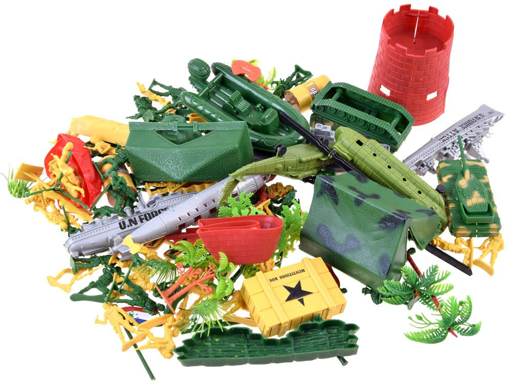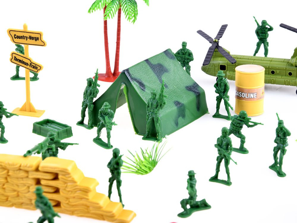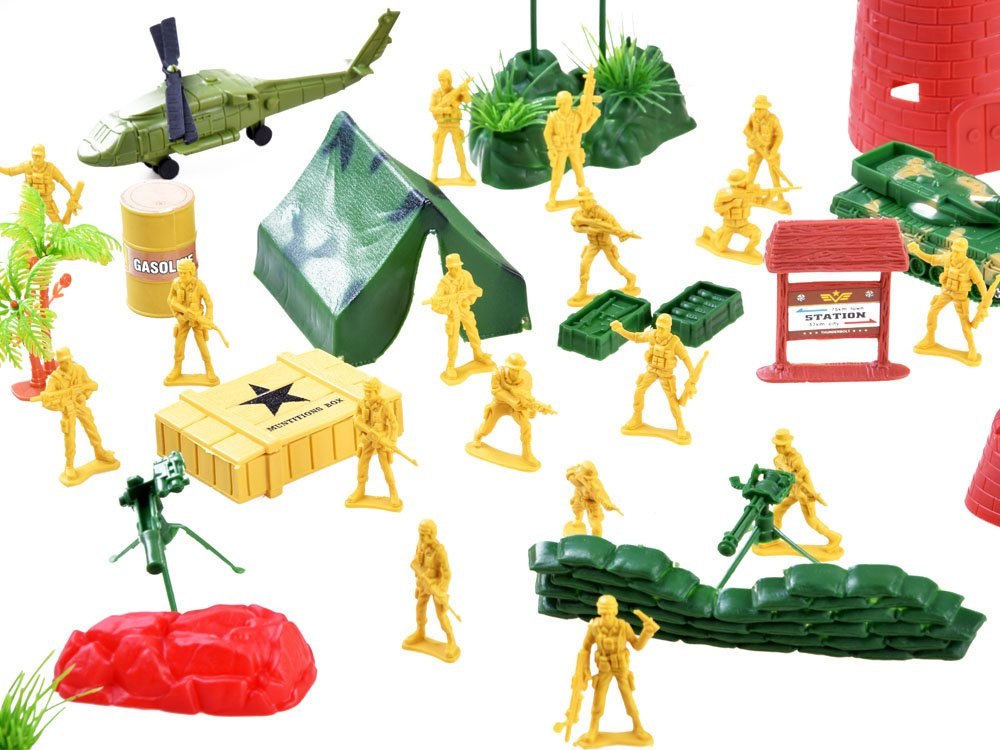 Ein stark ausgebauter Satz von Soldaten für das Spielen von Soldaten, militärische Aktivitäten, Paradeplanung usw. militärbezogene Aktivitäten. Die Kunststoff-Soldatenfiguren und das gesamte Kampfarsenal bieten jedem kleinen Jungen jede Menge kreativen Spaß.