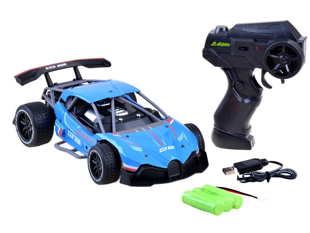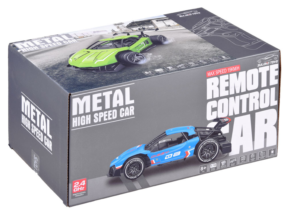 Das superstarke und schnelle Auto in Blau-Metallic wird sicherlich jeden (nicht nur Kinder:) ansprechen, der Autorennen mag. Das Fahrzeug wird ferngesteuert. Die Karosserie des Wagens ist aus Metall gefertigt, während andere zusätzliche Elemente aus Kunststoff bestehen, was zum großartigen Aussehen dieses Sportwagens beiträgt. Alles wurde mit großer Präzision und Aufmerksamkeit für die kleinsten Details hergestellt, so dass das Auto sehr realistisch aussieht. Sein ausgeklügeltes Design und sein Gewicht mit 4 Gummirädern tragen zu seiner Bodenhaftung bei und ermöglichen es ihm, mit einer Geschwindigkeit von bis zu 15 km/h auf der Bahn zu fahren! Seine Konstruktion ist nicht starr und daher extrem widerstandsfähig gegen unerwartete Unfälle, die während der Fahrt passieren.