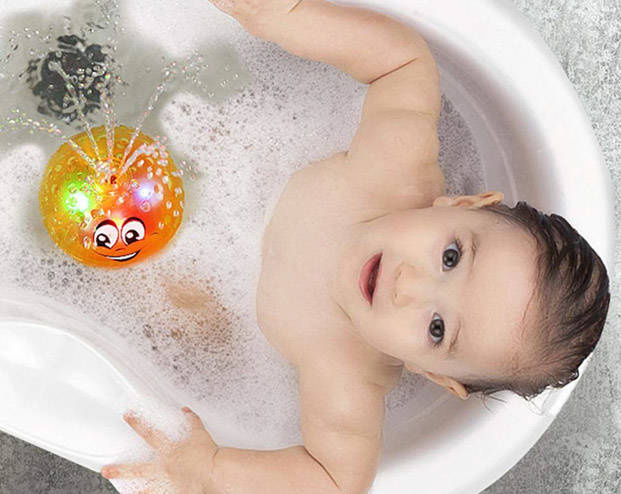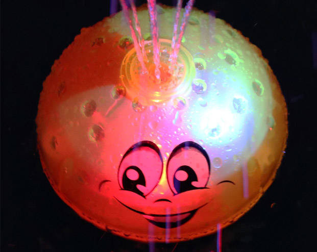 - Wenn die Kugel in Wasser getaucht wird, aktiviert sie sich automatisch und erzeugt eine Miniatur-Fontäne.