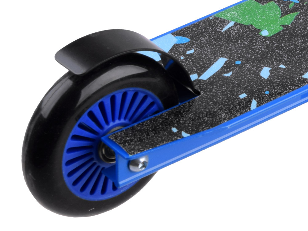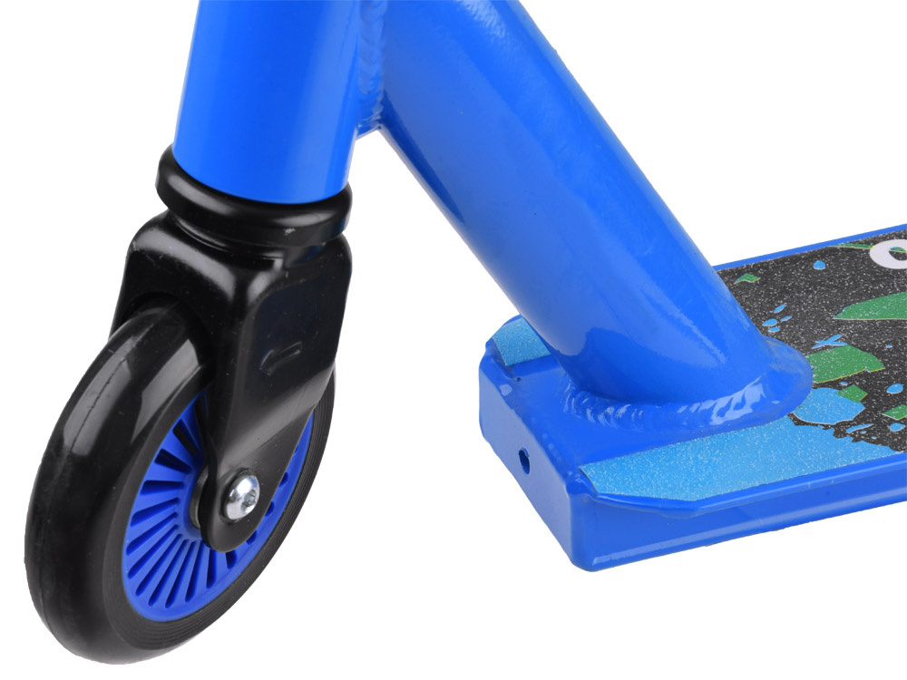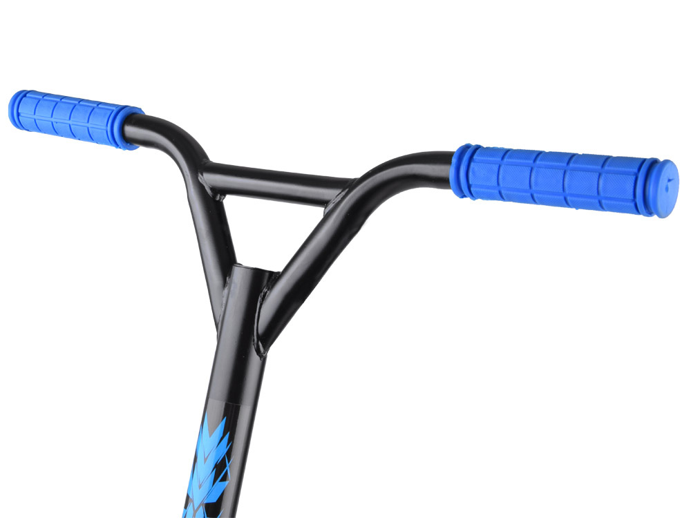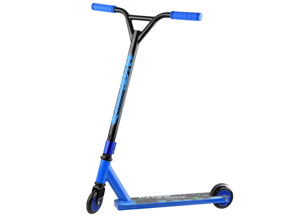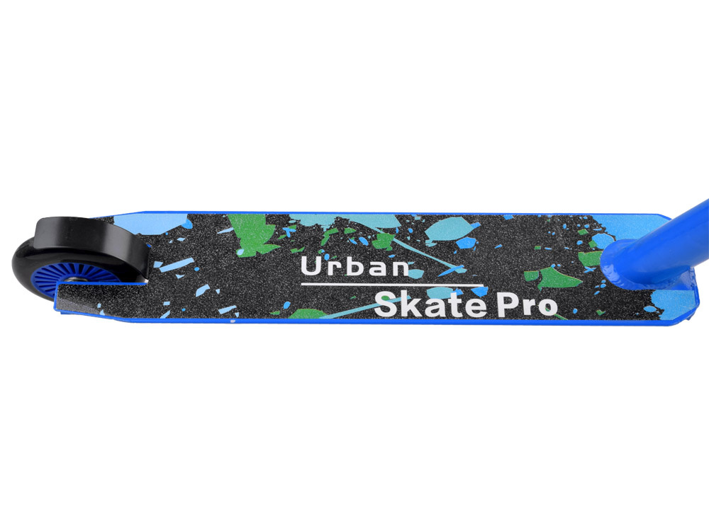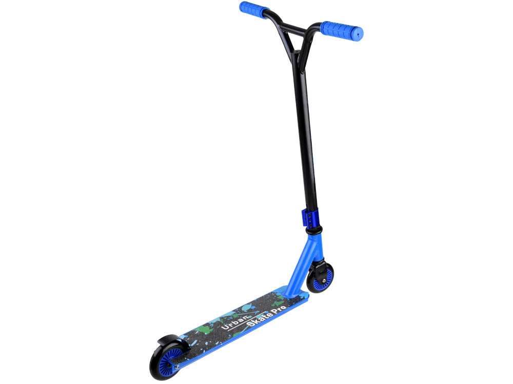 Derzweirädrige Skate Pro Performance Scooter ist die richtige Ausrüstung für alle, die mit dem Freestyle-Fahren beginnen wollen. Der Scooter kann spezielle Steigungen und profilierte Hügel bewältigen. Ideal zum Erlernen von Tricks und Stunts im Skatepark. Der "T"-förmige Lenker lässt sich um 360° drehen und ermöglicht es, verschiedene Tricks auszuführen. Komfort und Sicherheit bei der Benutzung des Lenkers werden auch durch die montierten Gummigriffe gewährleistet. Optimal dimensionierte Gummiräder sorgen für eine hervorragende Bodenhaftung.