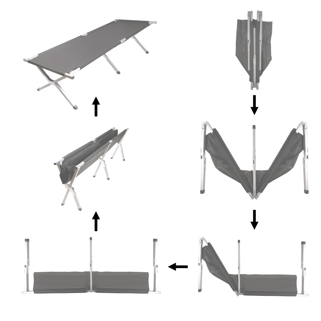 Zesílený ocelový rám a tříbodová křížová podpěra zajišťují stabilitu rozloženého lůžka a zaručují, že je opravdu pohodlné!