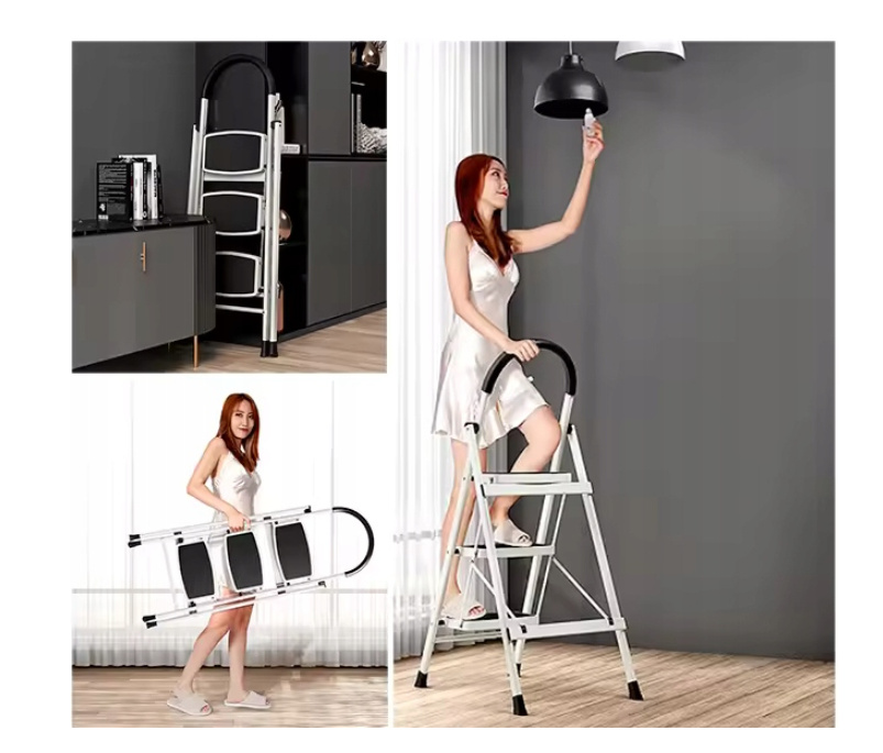 ✅ Přednosti produktu: Všestranné použití: Žebřík je ideální pro různé domácí práce, jako je výměna žárovek, dosažení vyšších polic nebo drobné opravy. Bezpečné a stabilní: Široké schůdky s protiskluzovými podložkami a gumové podložky na nohách zaručují stabilitu a bezpečnost při používání. Snadné přenášení a skladování: Díky skládací konstrukci a nízké hmotnosti (7 kg) se žebřík snadno přenáší a skladuje.