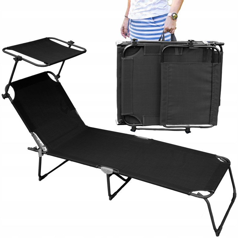SKŁADANY LEŻAK Z DASZKIEM Zainwestuj w swój własny zakątek relaksu na świeżym powietrzu z tym eleganckim składanym leżakiem ogrodowym. Leżak wykonany został z trwałego i lekkiego aluminium, co gwarantuje stabilność oraz łatwość przenoszenia. Idealne rozwiązanie dla ogrodu, tarasu czy basenu. Zadaszenie leżaka zapewnia przyjemny cień w gorące dni, chroniąc przed słońcem. Leżak rozkłada się na płasko.