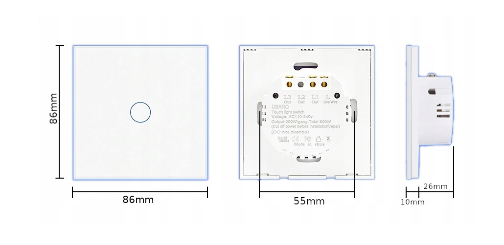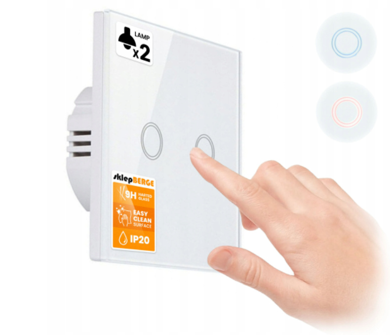 Skleněný dotykový vypínač dvojitý - bílý - SKLO