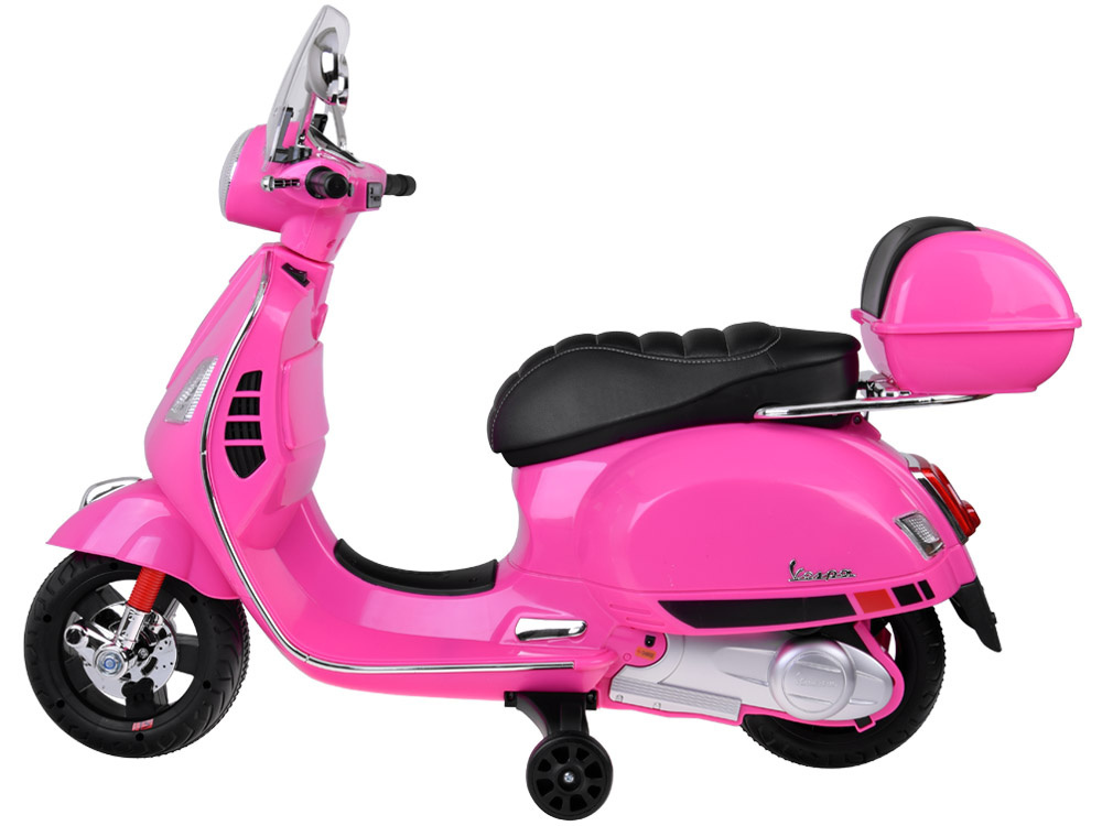 Vespa GTS została starannie dopracowana. Wygodne siodełko pokryte eko-skórą podnosi komfort jazdy. Ergonomiczne rączki z antypoślizgowymi wytłoczeniami sprawiają, że dziecko może pewnie prowadzić pojazd. Z myślą o bezpieczeństwie dziecka, pojazd został wyposażony w kółka boczne, gwarantujące stabilność podczas jazdy. Dodatkowo, Vespa posiada elektryczny hamulec, działający po zdjęciu nogi z pedałka gazu.