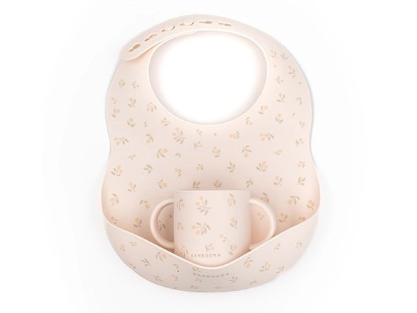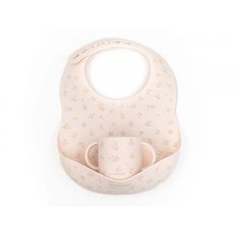 Śliniak silikonowy z kieszonką + kubeczek silikonowy Kwiatki 6m+ BAMBOOM uniwersalny