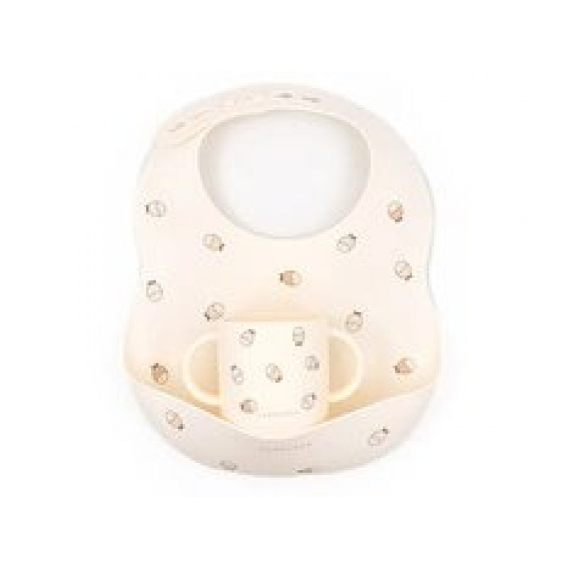 Śliniak silikonowy z kieszonką + kubeczek silikonowy Rybki 6m+ BAMBOOM uniwersalny