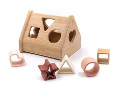 Drewniany domek sorter z silikonowymi kształtami - Idealna gra, która pomoże Twojemu dziecku rozwijać koordynację i interakcję ze światem zewnętrznym w zabawny i bezpieczny sposób. Drewniany domek do zabawy pozwoli mu rozpoznawać kształty i zwiększać koncentrację podczas zabawy.