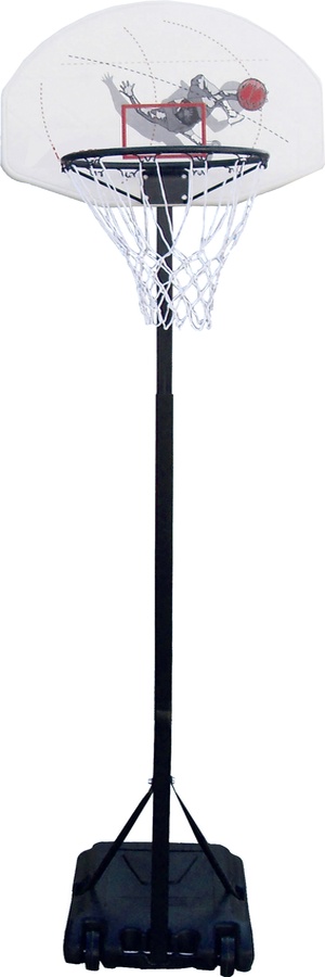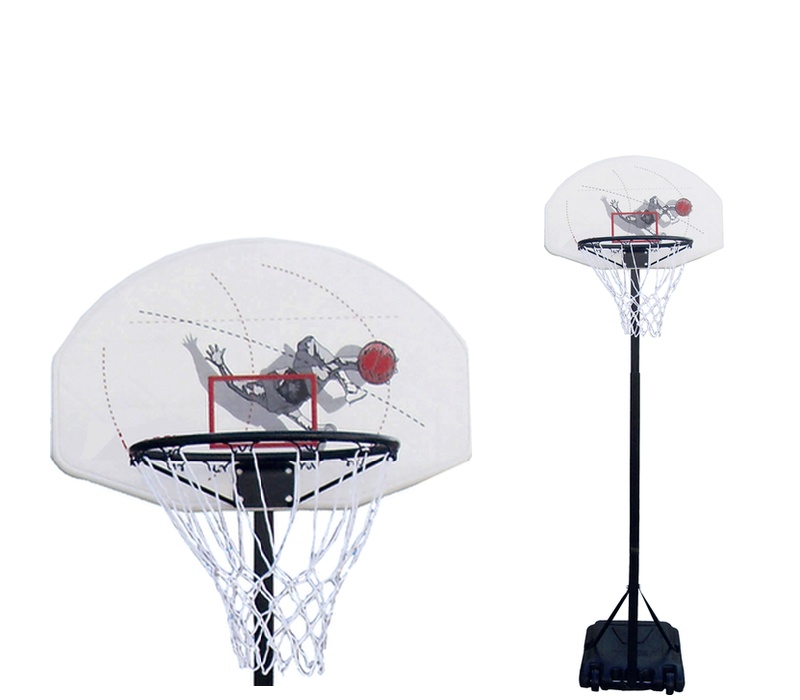 Mobiler Kinderbasketballkorb mit verstellbarer Höhe, stabilem Kunststoffdach und einem Korb mit Netz mit offiziellen Maßen.