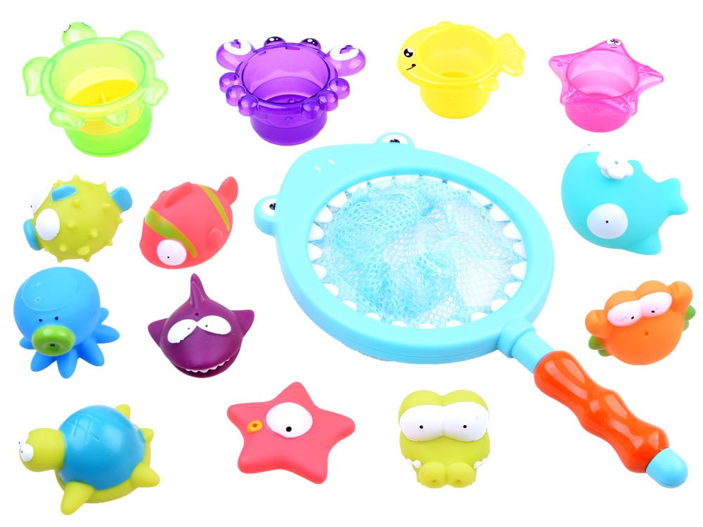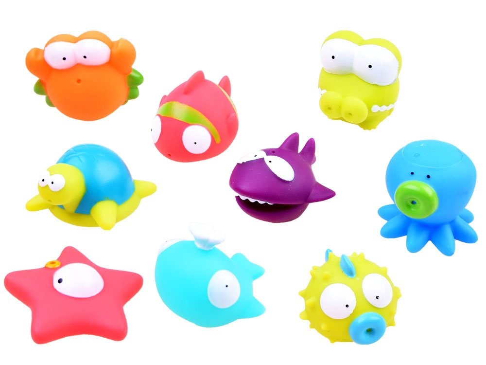 Dasfarbenfrohe Set aus Gummitieren und Wasserbechern wird alle Liebhaber des Schwimmens und Spielens im Wasser begeistern.