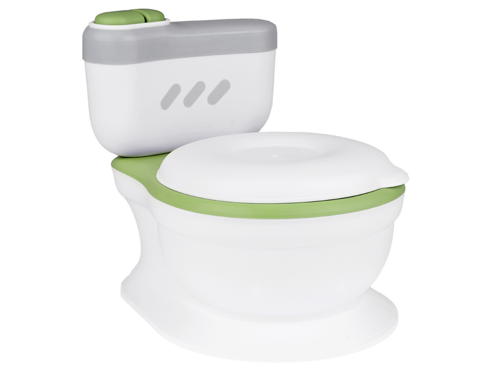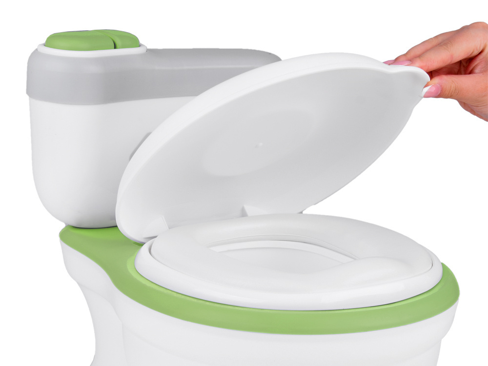 Ten interaktywny nocnik z miękką podstawką zapewni dziecku komfort i zabawę podczas nauki korzystania z toalety. Wygląda i działa jak prawdziwa toaleta – po naciśnięciu przycisku dziecko usłyszy realistyczny dźwięk spuszczanej wody, co sprawi, że proces odpieluchowania może stać się łatwiejszy. Dodatkowo nocnik posiada pojemnik na chusteczki, co pomaga maluchowi uczyć się odpowiedniej higieny od najmłodszych lat.