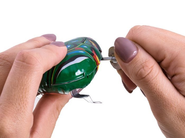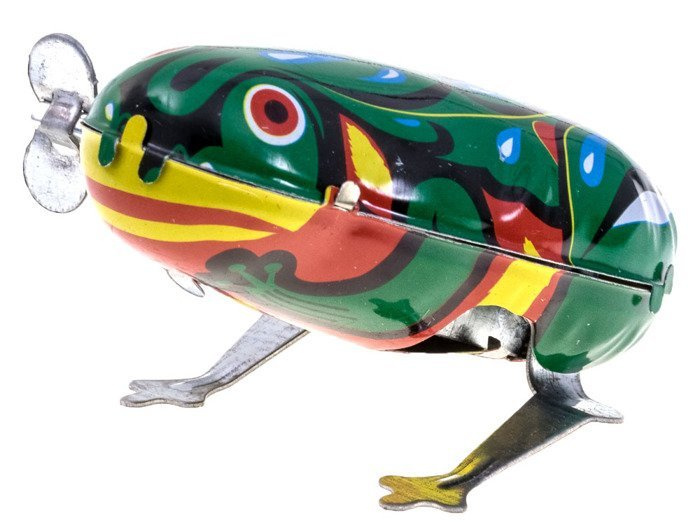 DerSchlüsselfrosch ist für Kinder gedacht.Ein Spielzeug wie in alten Zeiten, aus Metall in einer schönen grünen Farbe und mit einem Schlüssel verschraubt. Die Bewegung des Metallfrosches wird durch einen Federmechanismus gewährleistet, der mit einem Schlüssel eingeschraubt wird.