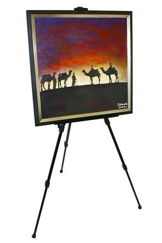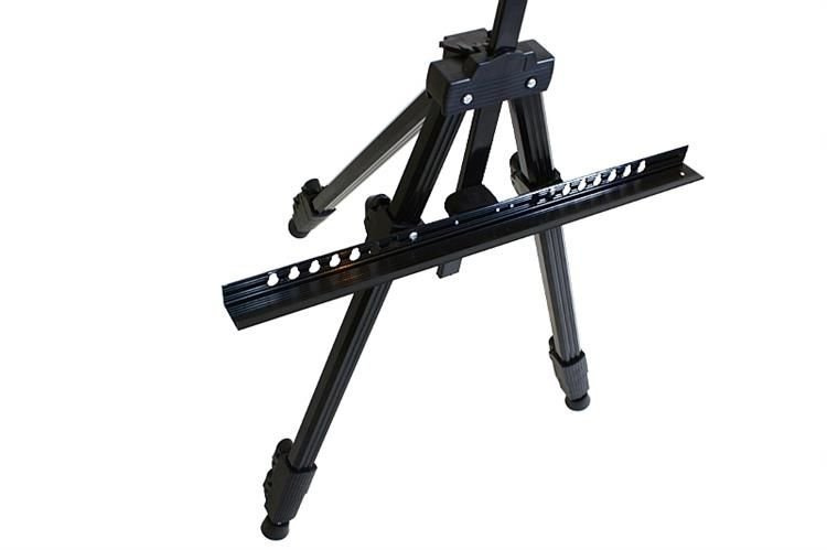 3-segmentige verstellbare Füße sorgen für eine präzise Höheneinstellung des Ständers. Einstellbare Höhe des Bilderhalters - mit einer Bewegung der Klemme kann er an die Höhe und Dicke des Bildes angepasst werden.