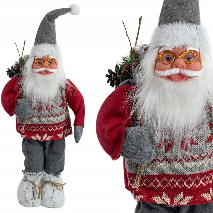 MIKOŁAJ świąteczny DUŻY 61 cm Wysokość: 61 cm (z wyprostowaną czapką) Szerokość: 21 cm Śliczny Mikołaj doda uroku i magii Waszym Świętom. PIĘKNA OZDOBA - IDEALNY POMYSŁ NA PREZENT Mikołaj wykonany z plastiku, na głowie ma wełnianą czapkę wykończoną futerkiem z dzwoneczkiem na samym jej czubku, Figurka ma wysokość ok. 60 cm, jest idealna do postawienia w ganku, przy drzwiach wejściowych, przy kominku, obok świątecznego stołu i w każdym innym zakątku, który można zagospodarować pod magię Świąt.