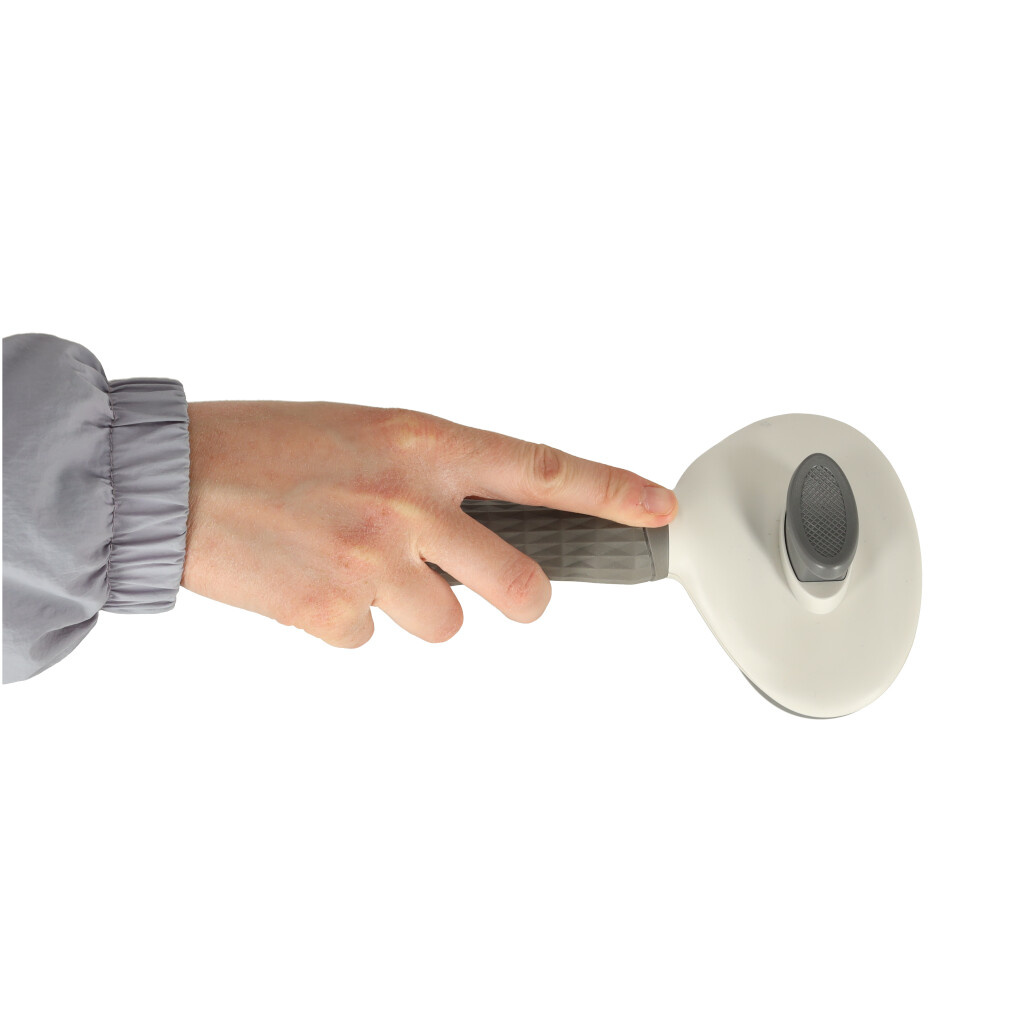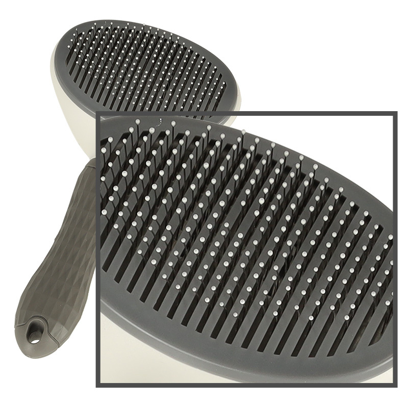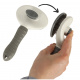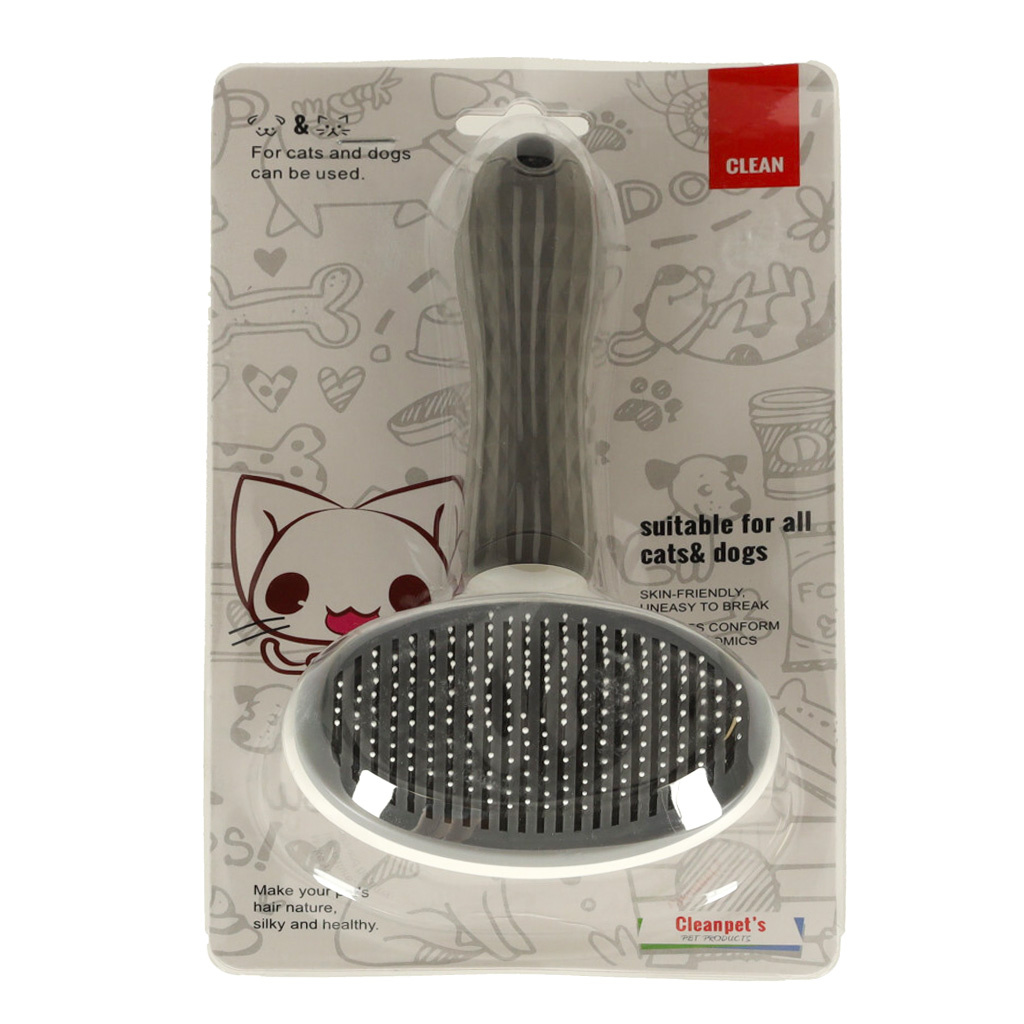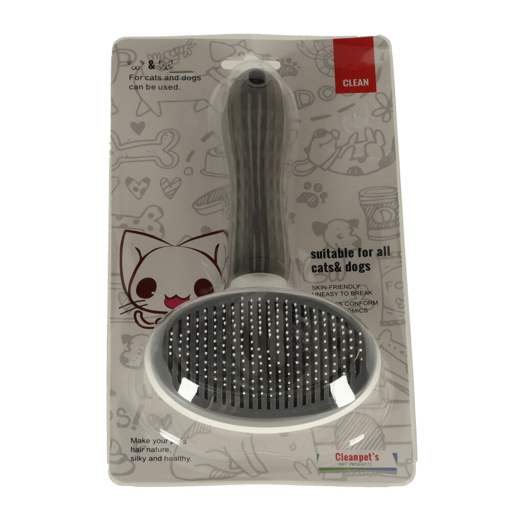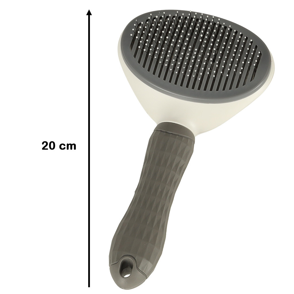 Die Bürste ist außerdem mit einem Selbstreinigungsmechanismus ausgestattet. Das bedeutet, dass man beim Bürsten des Tieres die Haare nicht zwischen die Zähne der Bürste schieben muss. Drücken Sie einfach auf den Knopf, und alle gekämmten Haare werden leicht von der Bürste getrennt.