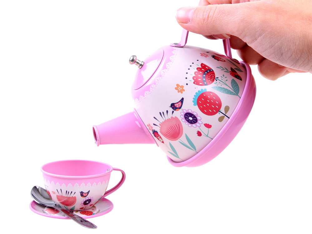 Das Geschirr ist aus Metall und mit viel Liebe zum Detail gefertigt. Wunderschöne Pastellfarben und bezaubernde florale Grafiken ziehen die Blicke auf sich.