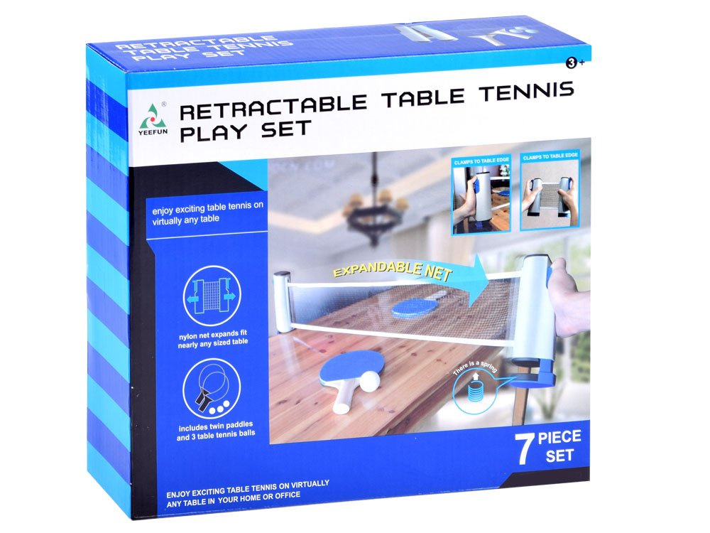 Sie können dieses praktische Set buchstäblich überall hin mitnehmen und nach Belieben verwenden. Alles, was Sie brauchen, ist eine Tischplatte, und Sie sind fertig. Das Set enthält ein verstellbares Netz, zwei Schläger und drei Bälle.