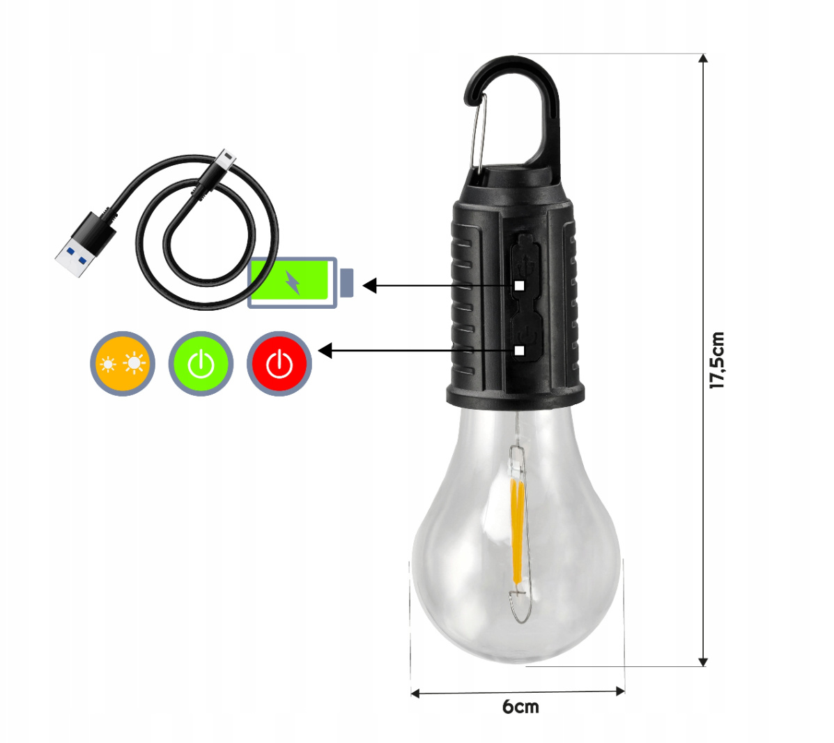 Jeho voděodolnost, stmívatelnost a dlouhá výdrž baterie z něj dělají produkt, na který se můžete vždy spolehnout. ✅ Výhody produktu: Snadné použití: Vestavěný háček vám umožní rychle a snadno zavěsit svítilnu kamkoli, díky čemuž je mimořádně praktická na kempech, ve stanech nebo v karavanech. Vodotěsnost: Konstrukce svítilny je voděodolná, což zajišťuje bezpečné použití i v náročných povětrnostních podmínkách. Mobilita: Díky baterii je svítilna nezávislá na externím zdroji energie, což z ní dělá perfektního společníka na jakoukoliv expedici. ✅ Ideální pro: Karavany: Perfektní pro osvětlení stanu, kempu nebo karavanu. Cestovatelé: Spolehlivý společník na každou cestu bez ohledu na povětrnostní podmínky. Domácí nouzové světelné zdroje: Perfektní jako záložní zdroj světla v případě výpadku proudu. Technické údaje:Model: Nabíjecí LED kempingová žárovka AKU004