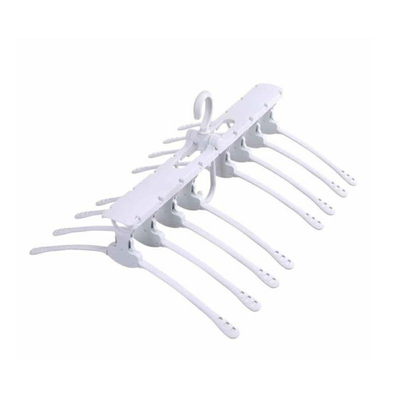 Wielofunkcyjny składany wieszak na ubrania, z możliwością dowolnej konfiguracji. Świetnie sprawdza się w szerokich i płytkich przestrzeniach. Maksymalnie w ramach jednego wieszaka można zamocować 8 mniejszych oraz 1 haczyk. Specyfikacja: wieszak obracany 360st. 8 składanych wieszaków i haczyk w ramach jednego głównego wieszaka oszczędność miejsca rozpiętość głównego wieszaka: 51,5cm rozpiętość mniejszego wieszaka: 41cm dowolność konfiguracji wieszaków Ilość szt. w kartonie: 40 Ilość szt. na palecie: 320