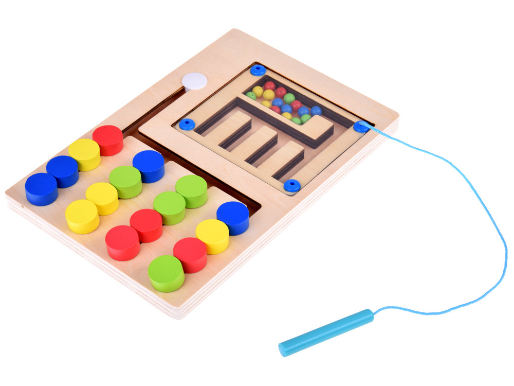 Magnetyczna drewniana układanka z kolorowymi kulkami i rysikiem – rozwijająca zabawa dla dzieci zabawka Montessori. Zabawka, która buduje pewność siebie i rozbudza dziecięce marzenia.