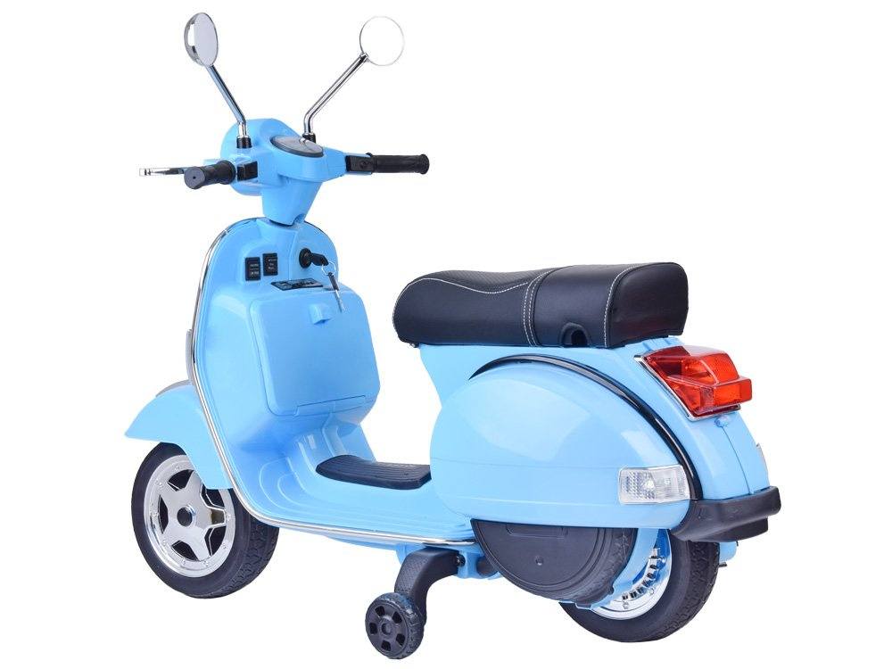 Weiche EVA-Räder und ein bequemer Öko-Ledersitz machen die Fahrt sicher und angenehm. Die seitlichen Räder sorgen für die Stabilität des Scooters während der Fahrt. Ein weiterer Vorteil des Motorrads ist das einfache Auf- und Absteigen, so dass das Kind die Fahrt frei dosieren kann.