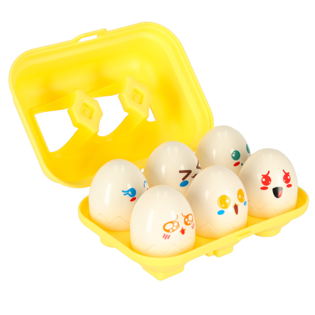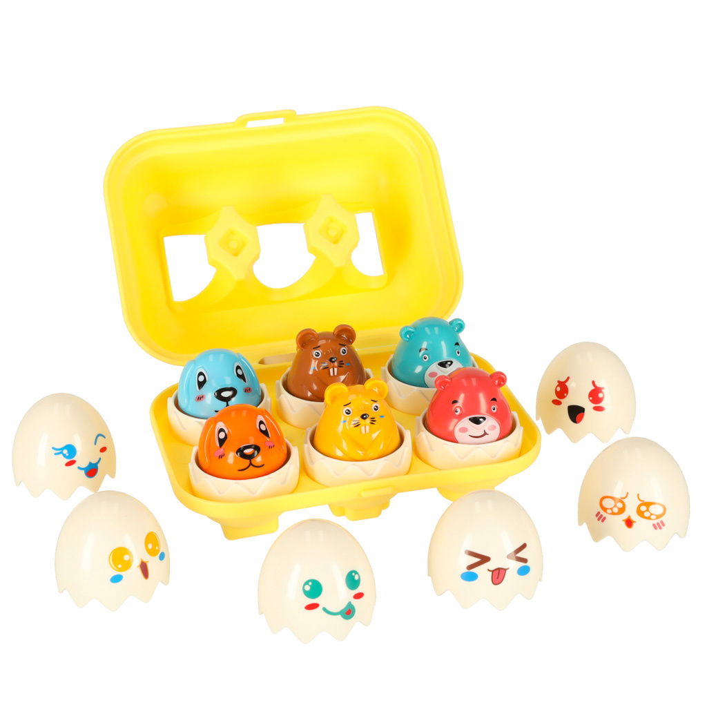 Každé vajíčko se skládá ze dvou částí, které je třeba spojit - přiřadit tvary, barvy a vzory na dně. Tímto způsobem si děťátko rozvíjí logické myšlení, učí se rozlišovat barvy a tvary a pamatovat si uspořádání - skvělé cvičení paměti a soustředění.