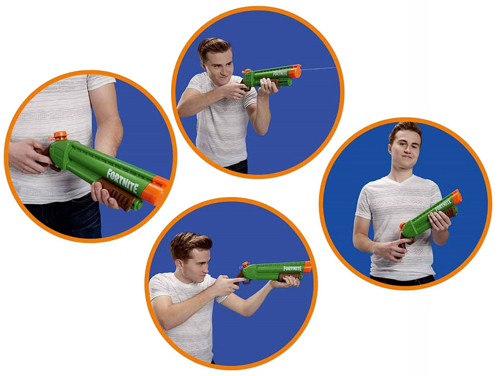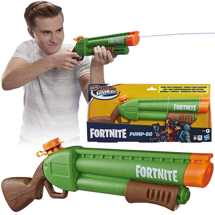 Hasbro NERF SUPER SOAKER - Fortnite Pump Wasserbatterie ist ein Traum von vielen Kindern, die Wasserschlachten im heißen Sommer oder während lustiger Bäder in der Wanne lieben, besonders während Dyngus.Der NERF SUPER SOAKER ist eine völlig sichere Waffe, die einen Wasserstrahl verschießt.