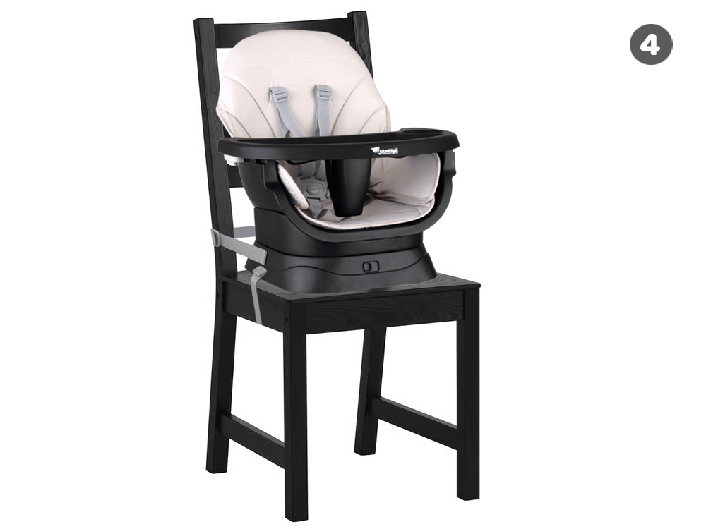 - Nadstawka na krzesło do jadalni – dzięki pasom mocującym bezpiecznie przymocujesz fotelik do standardowego krzesła, by dziecko mogło siedzieć przy stole razem z domownikami, ucząc się zasad wspólnego spożywania posiłków.