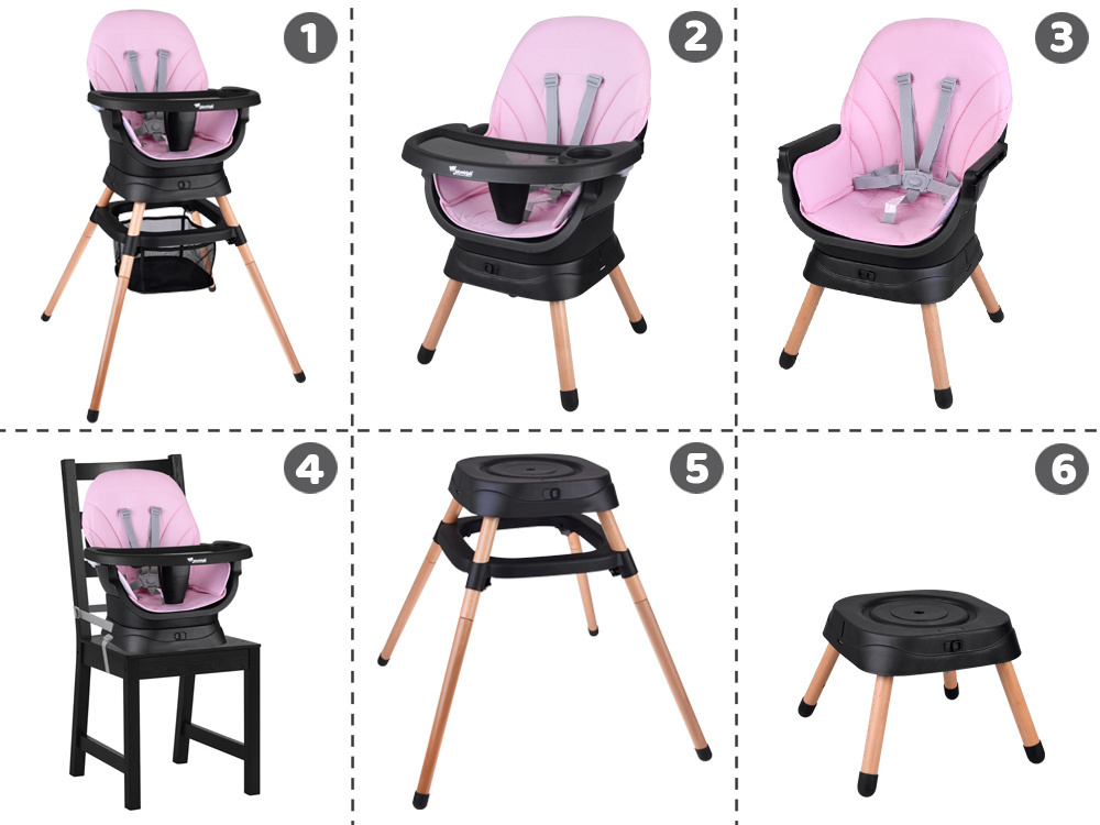 Nasze wielofunkcyjne krzesełko do karmienia 6w1 to idealne rozwiązanie dla rodziców, którzy cenią wygodę, bezpieczeństwo i praktyczność. Dzięki przemyślanej konstrukcji krzesełko dopasowuje się do potrzeb dziecka na każdym etapie rozwoju – od pierwszych posiłków po samodzielną zabawę i naukę. To nowoczesny, ergonomiczny i bezpieczny mebel, który idealnie wkomponuje się w przestrzeń każdego domu: salonu, kuchni, pokoju dziecięcego czy jadalni.
