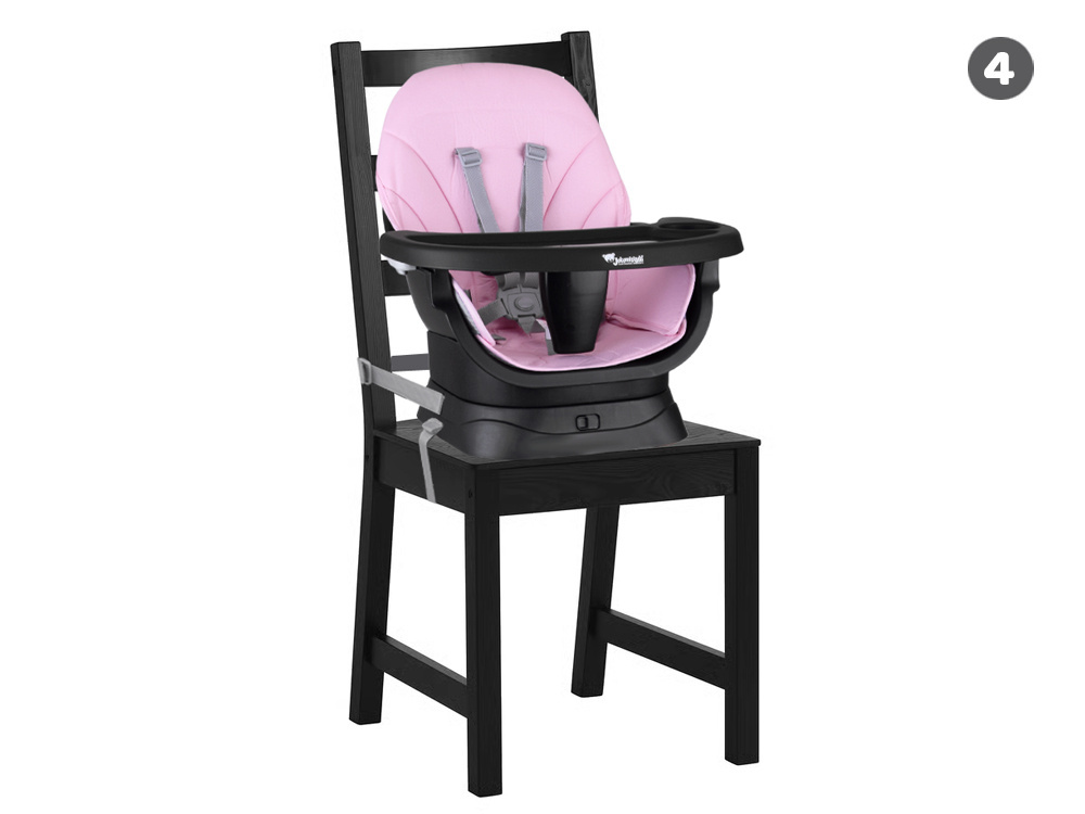 4. Nadstawka na krzesło do jadalni – dzięki pasom mocującym bezpiecznie przymocujesz fotelik do standardowego krzesła, by dziecko mogło siedzieć przy stole razem z domownikami, ucząc się zasad wspólnego spożywania posiłków.