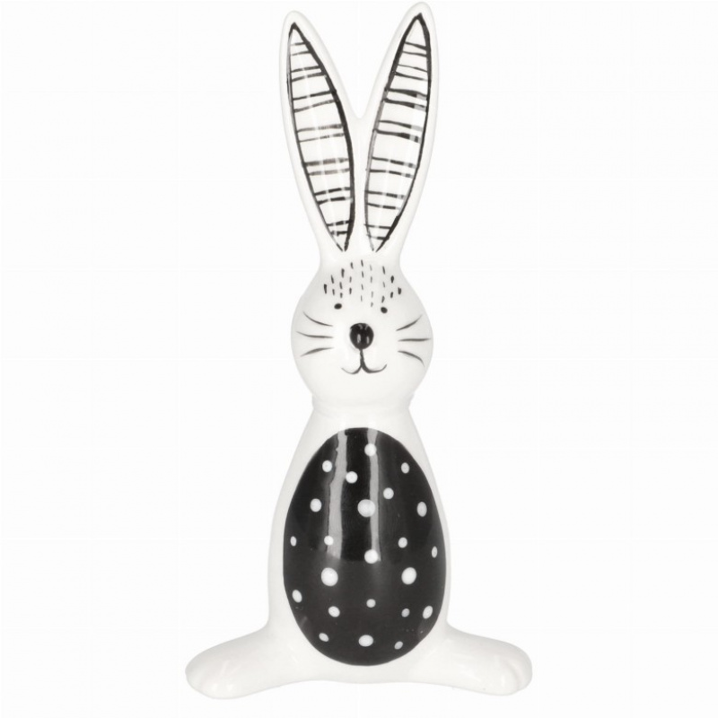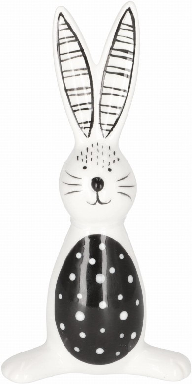 Dodaj uroku swojej wielkanocnej aranżacji z wyjątkową ceramiczną dekoracją! Zajączek z jajkiem na brzuchu to wspaniały symbol wiosny i Wielkanocy, który z pewnością przyciągnie uwagę gości. Wykonany z wysokiej jakości ceramiki, ten zajączek doskonale sprawdzi się jako ozdoba na stół, komodę czy półkę, wprowadzając do wnętrza radosną atmosferę świąt.