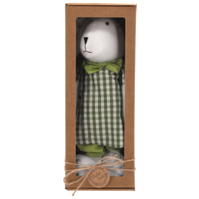 Zajączek materiałowy na teleskopowych nogach w ozdobnym opakowaniu